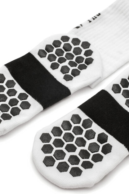 Skarpetki antypoślizgowe REA TAPE RT pro wykonane są z bawełny najwyższej jakości! Sprawdzają się doskonale podczas ćwiczeń jak i do noszenia na co dzień. Dodatkowo posiadają elastyczny ściągacz, który nie pozwala na zsuwanie się skarpety z nogi, a dodatkowy ściągacz na śródstopiu stabilizuje skarpetę w bucie. Siatki wentylacyjne na górze stopy umożliwiają lepsze odprowadzanie wilgoci – air circulate system.